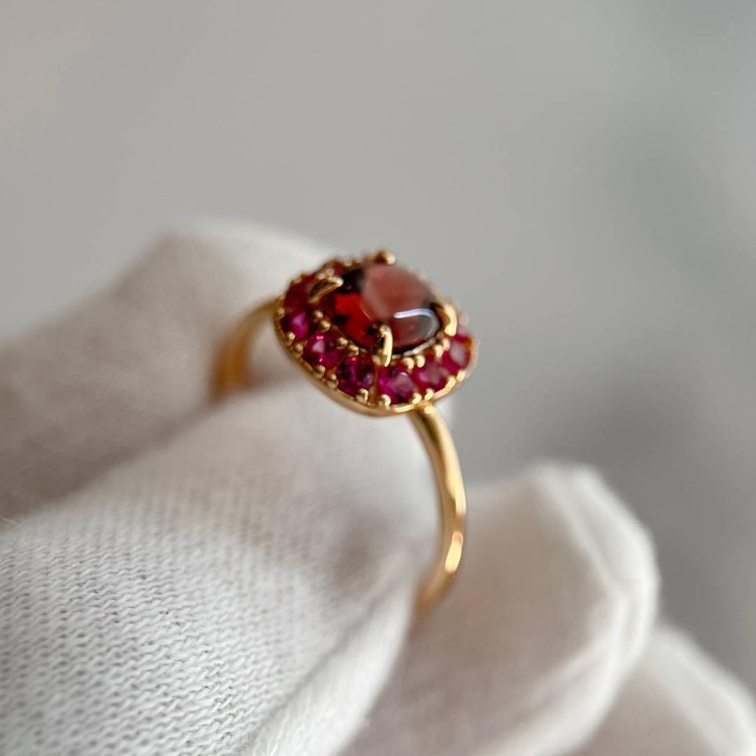 天然ガーネットの周りにはピンク色の人工ルビーがあしらわれており、ゴージャスな印象です。