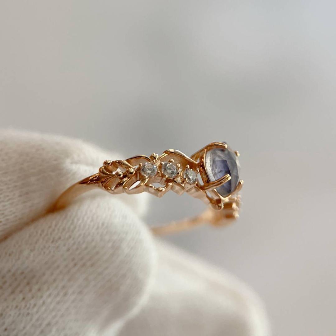 アイオライトとラブラドライトを貼り合わせた、ダブレットストーンのリングです。