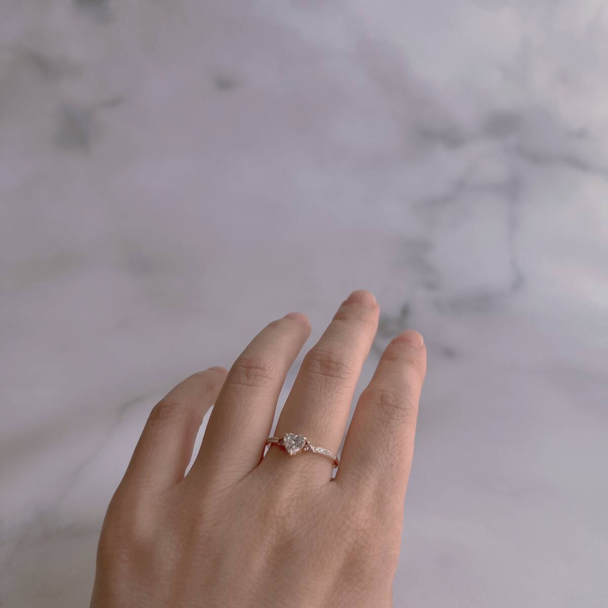 ハート型にカットされた高炭素ダイヤモンド(人工ダイヤモンド)のリングです。