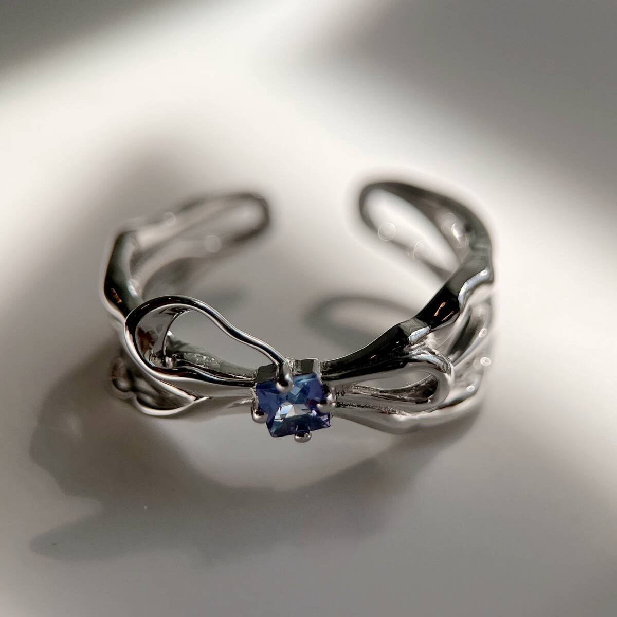 天然タンザナイト リボンリング フリーサイズ (12〜14号程度) silver925製