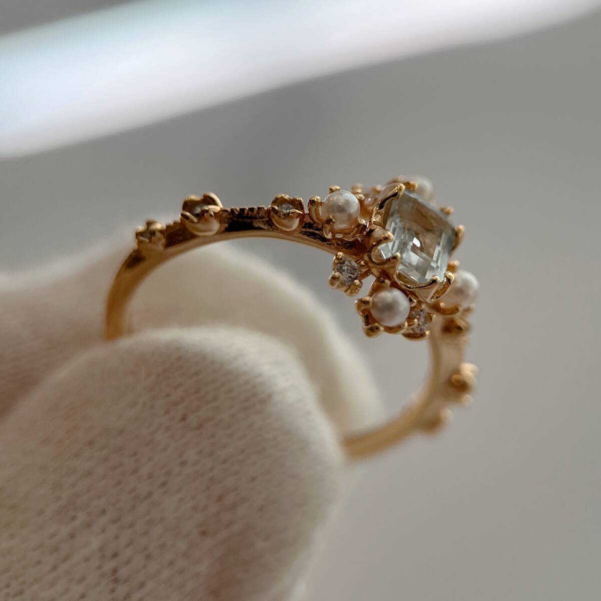 天然ブルートパーズ&パール リング フリーサイズ(12~15号程度)