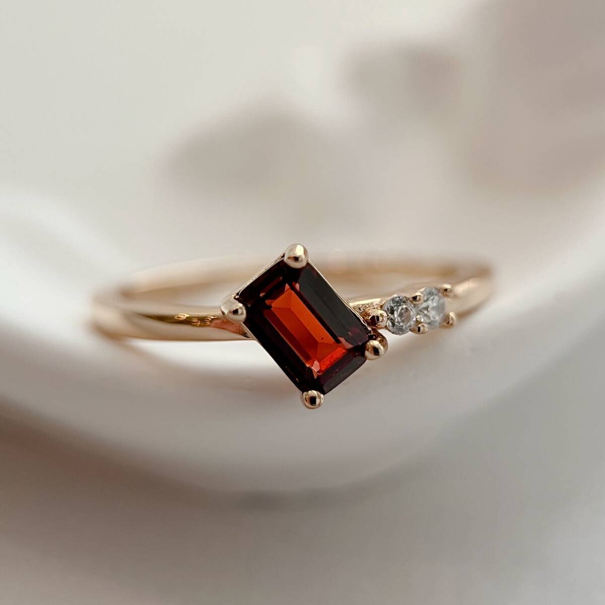 天然ガーネットを使った、モダンなデザインのリングです。