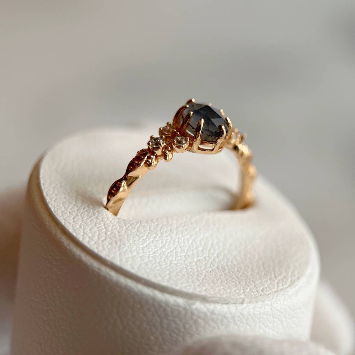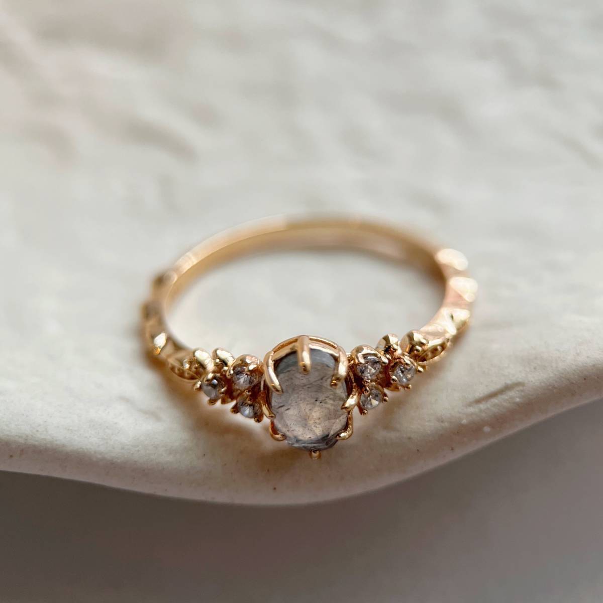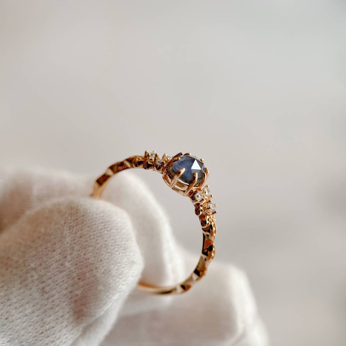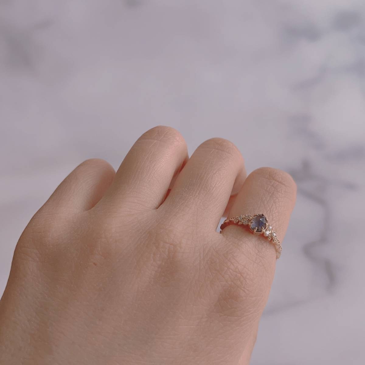 アイオライトとラブラドライトを貼り合わせた、ダブレットストーンの一粒石リングです。