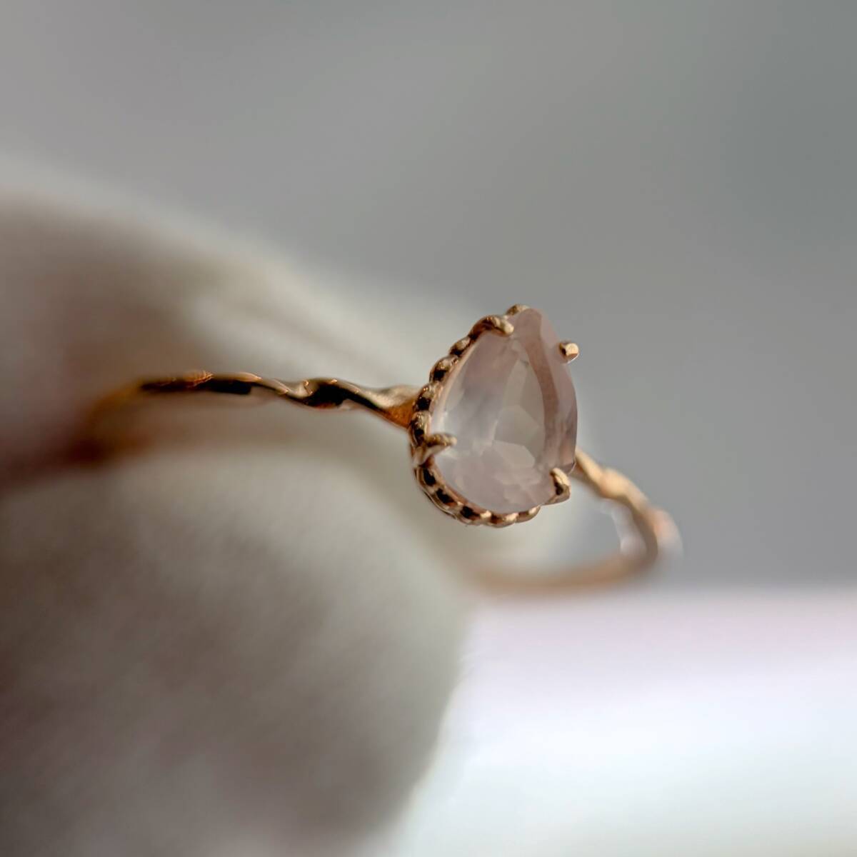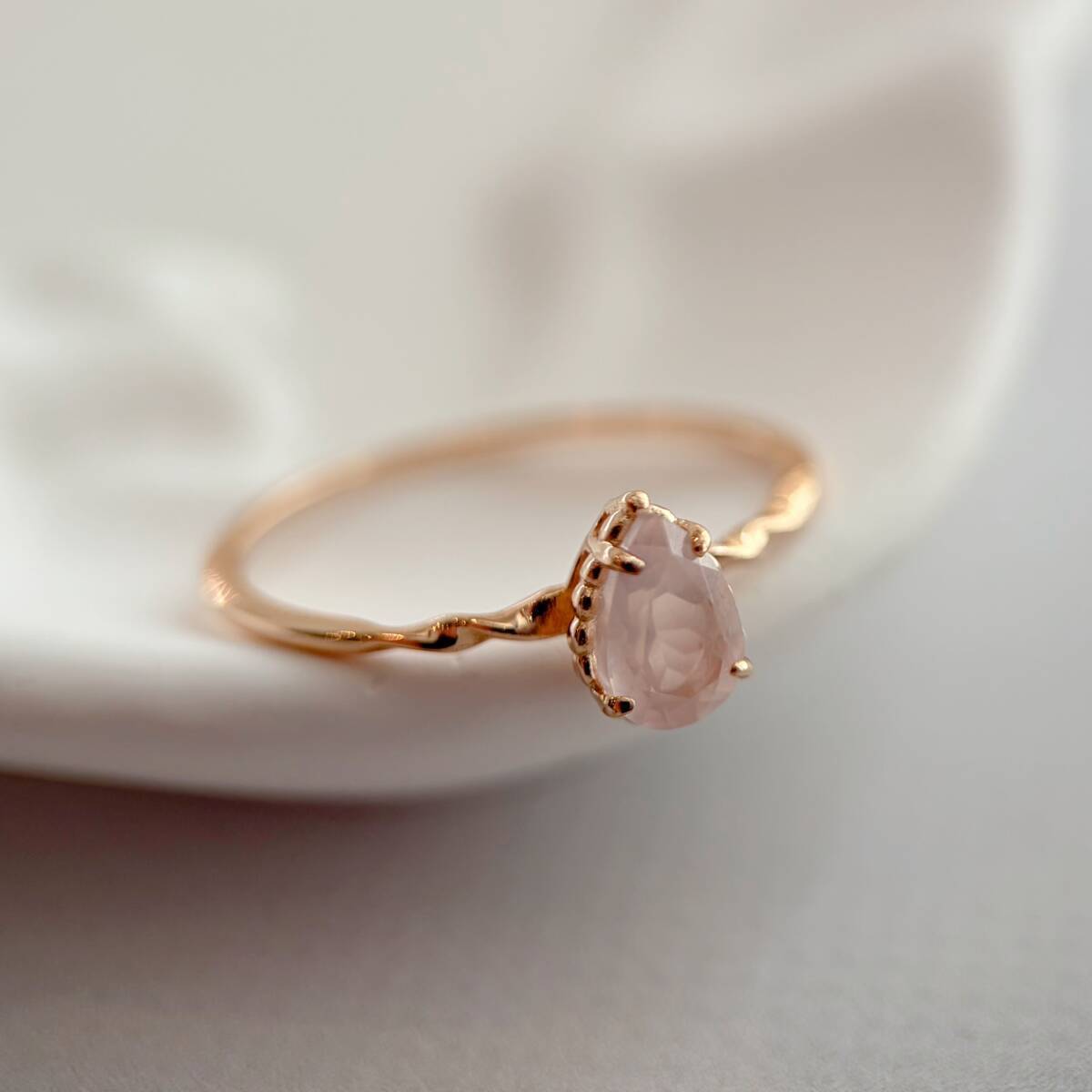 雫型が可愛らしいシンプルな一粒石リング。