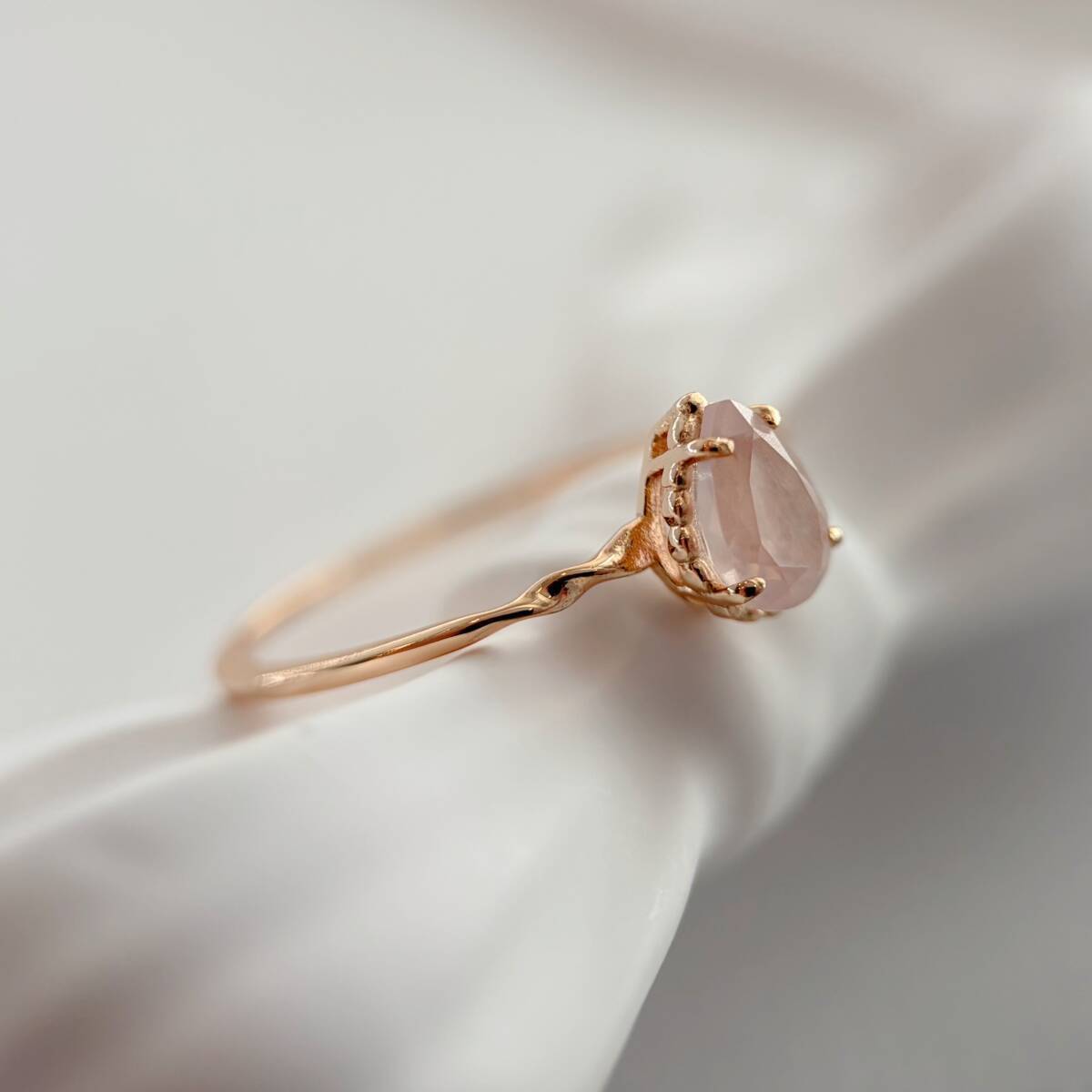 天然ローズクォーツ しずく型リング silver925製