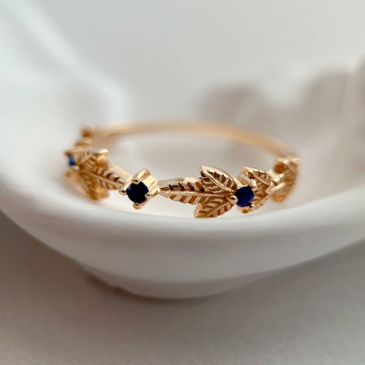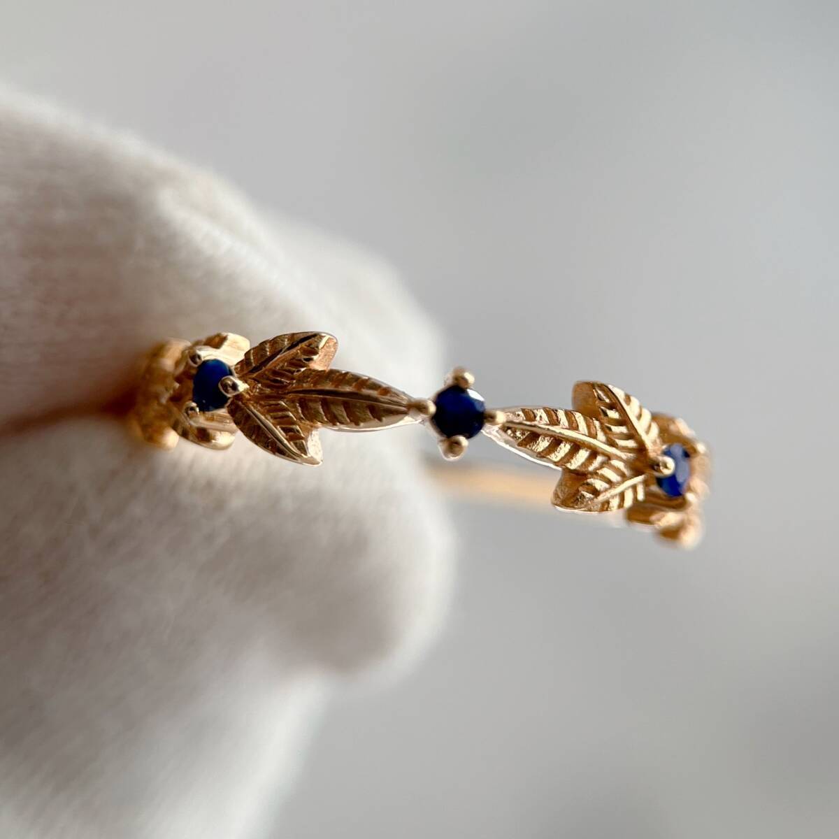 小粒の天然ラピスラズリが3石あしらわれたリング。