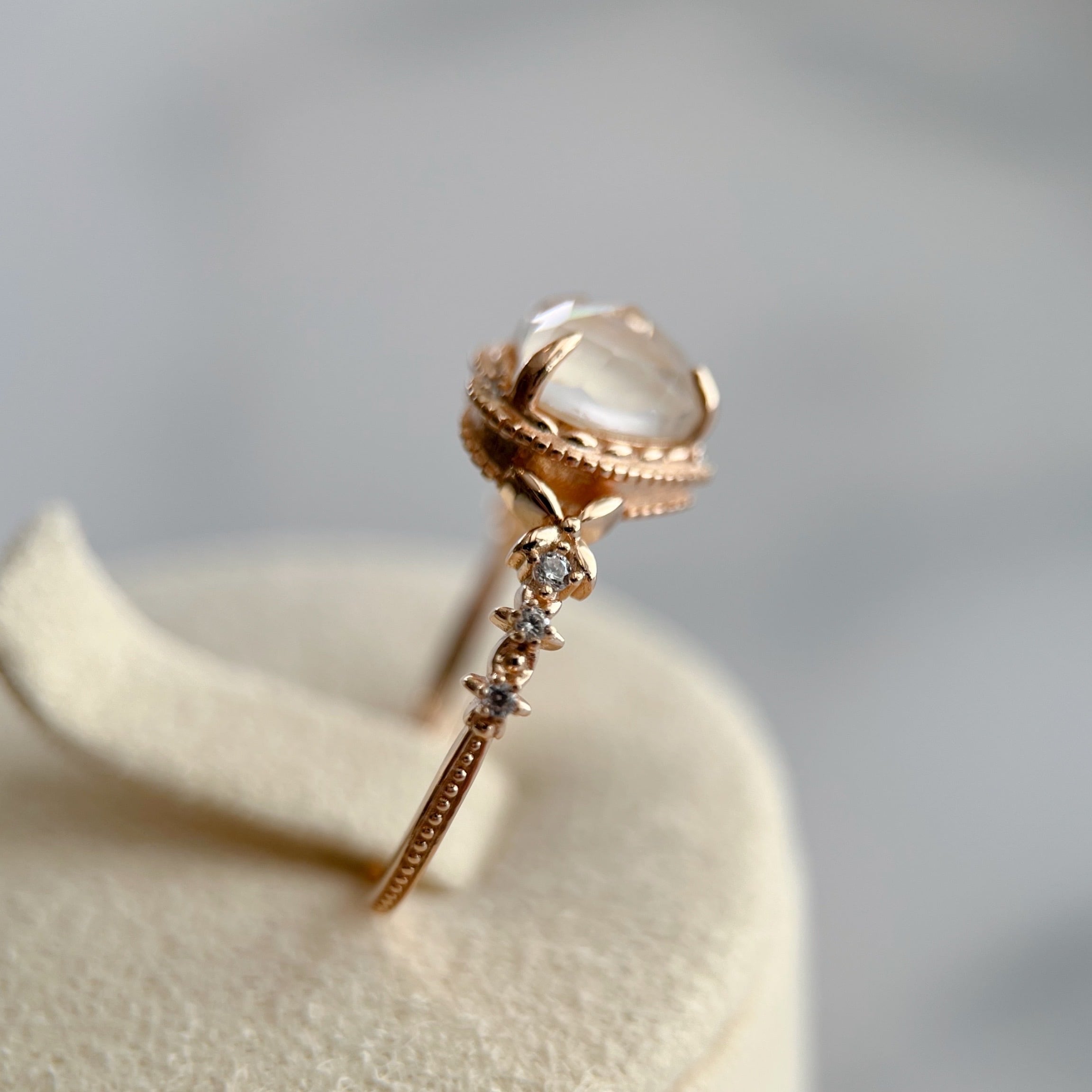 天然クリスタルとマザーオブパールのダブレット石のリング。