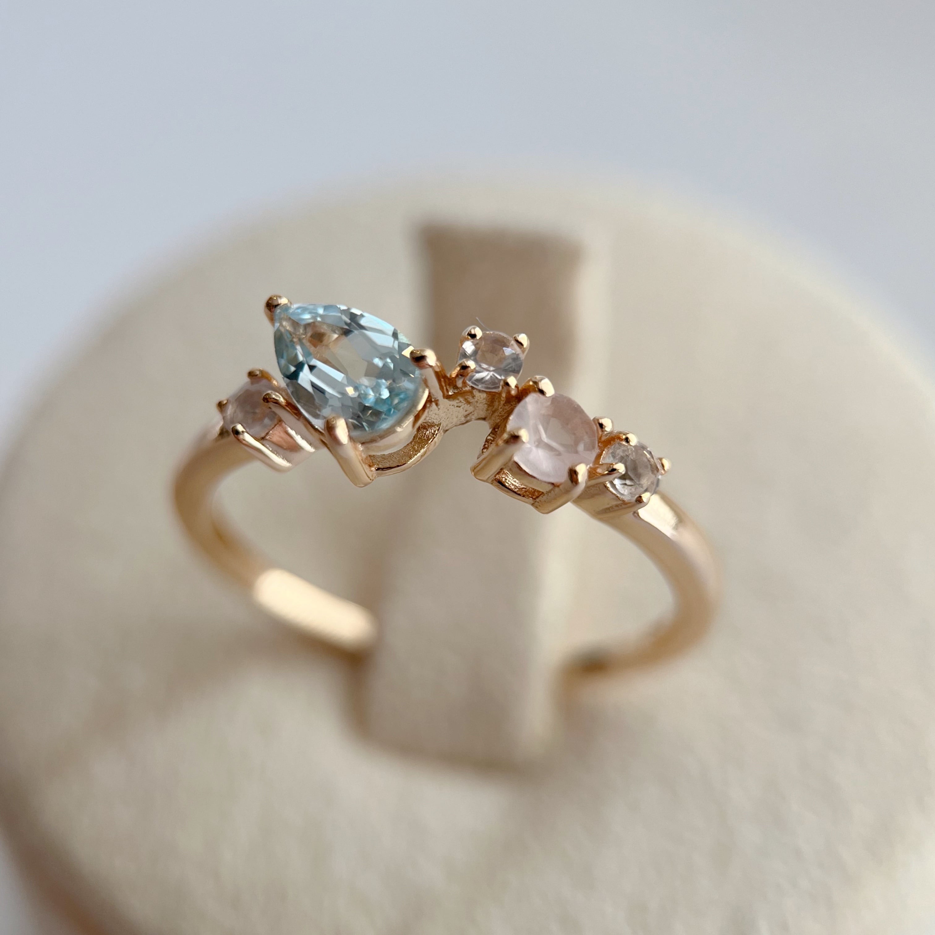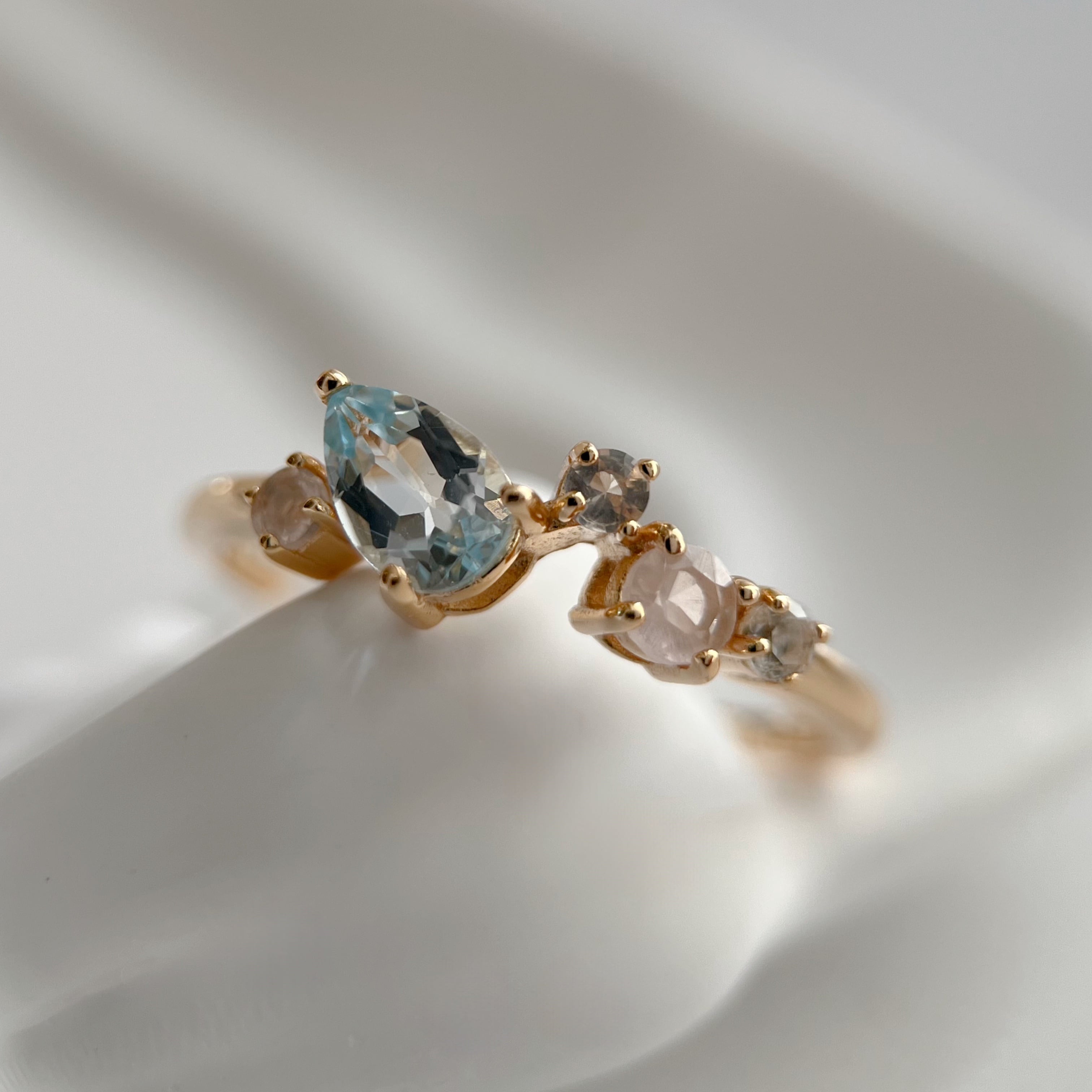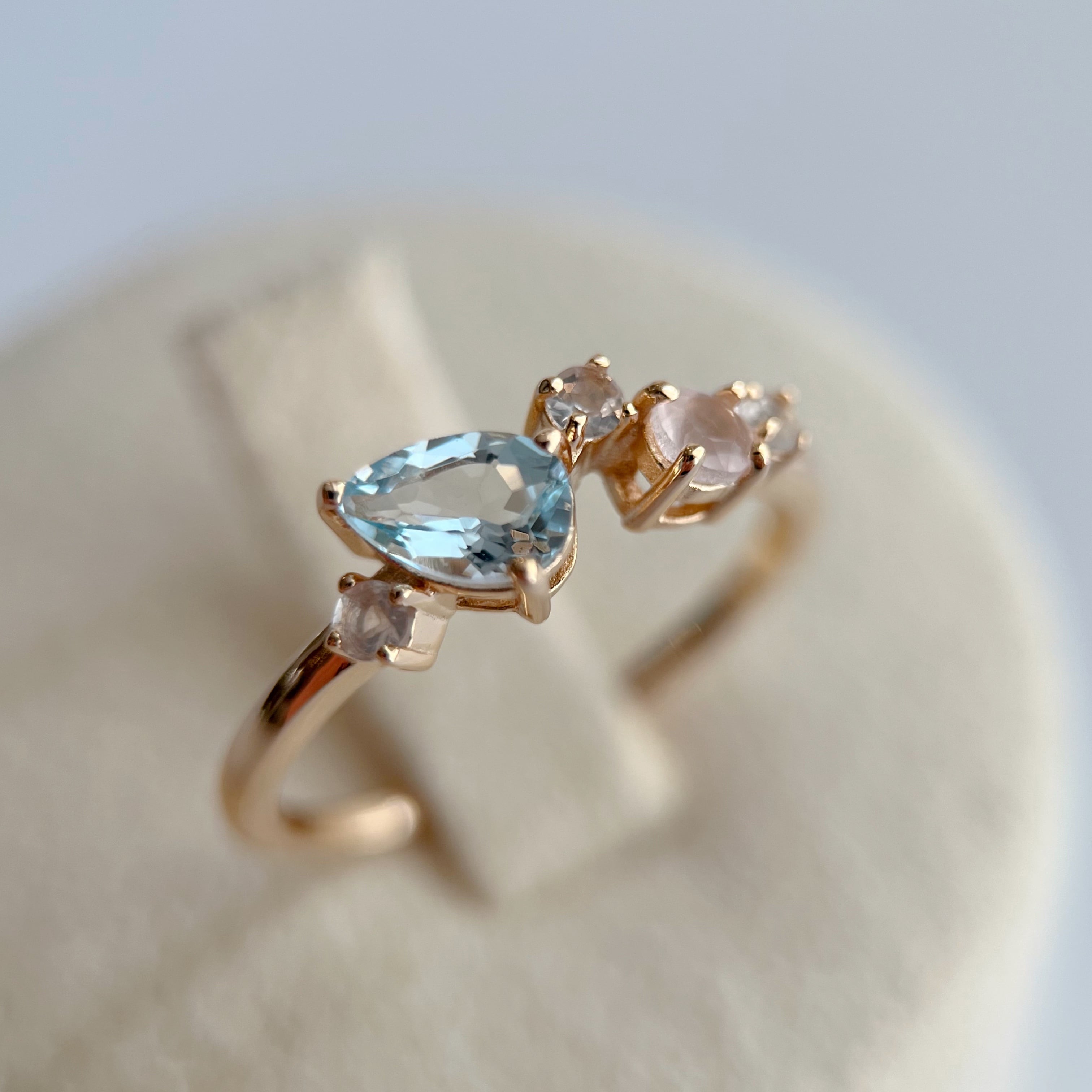 天然スカイブルートパーズ&ローズクォーツ ランダムリング silver925製