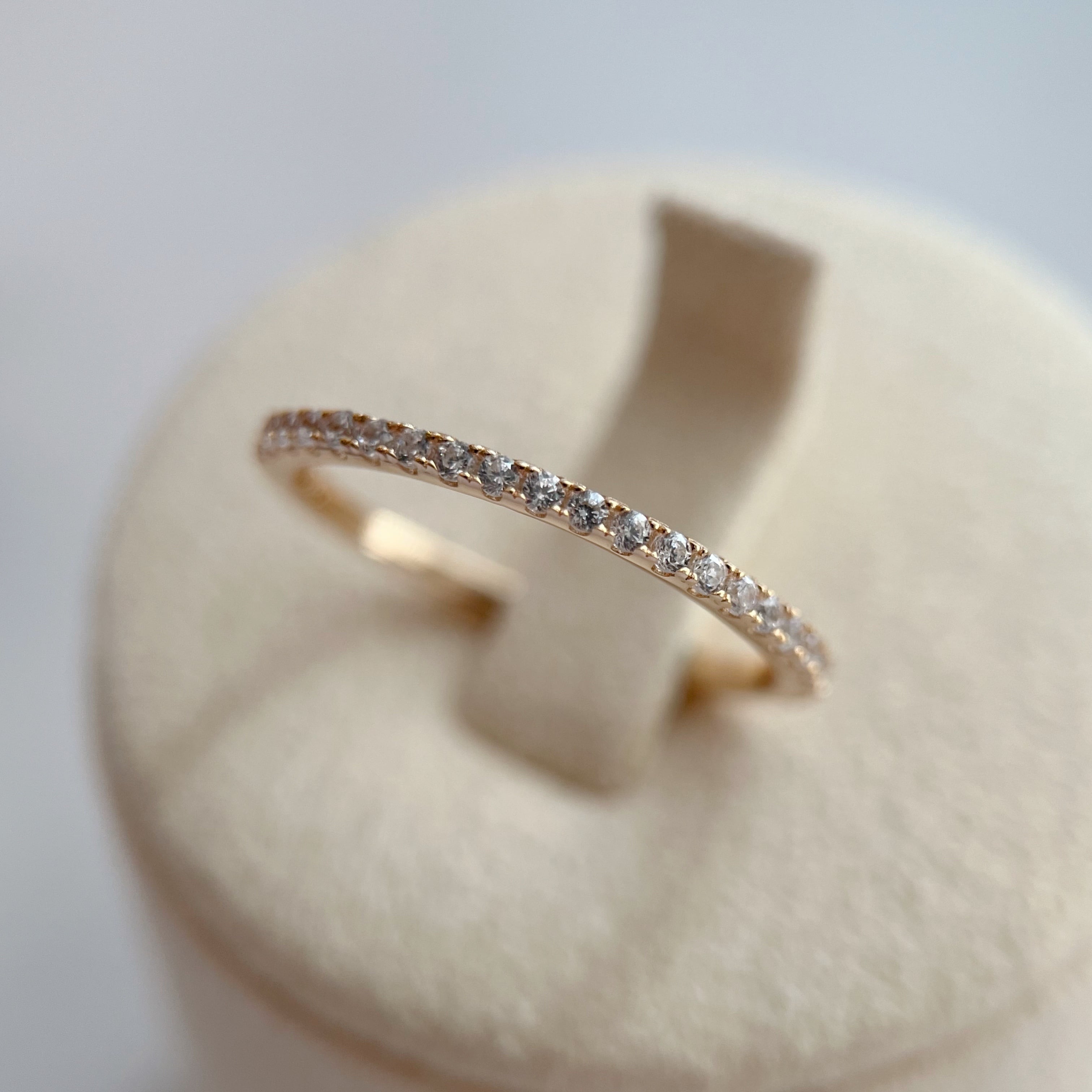 シンプルな天然ブルームーンストーンの一粒石リングと、キュービックジルコニアのハーフエタニティ風リングの2本セットです。