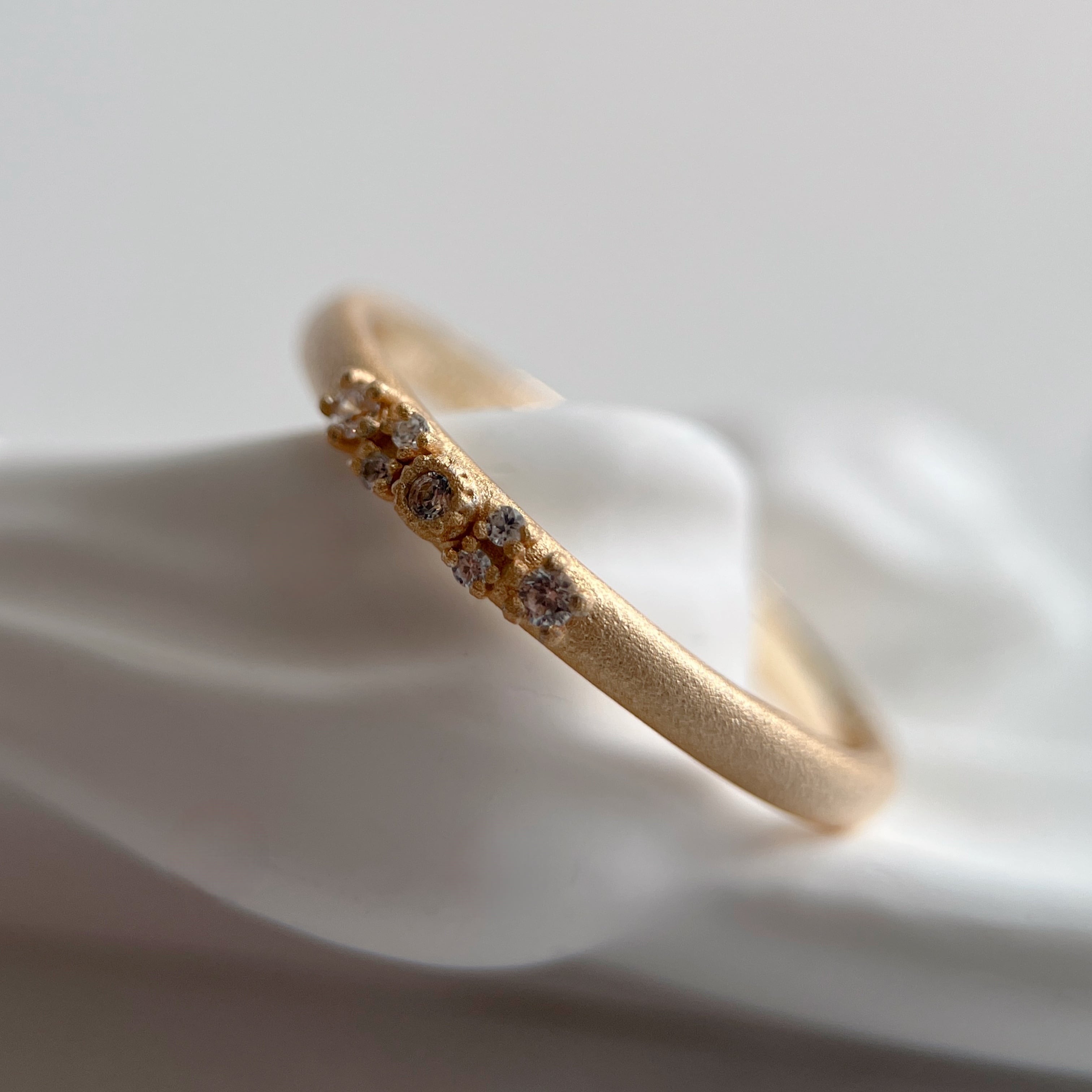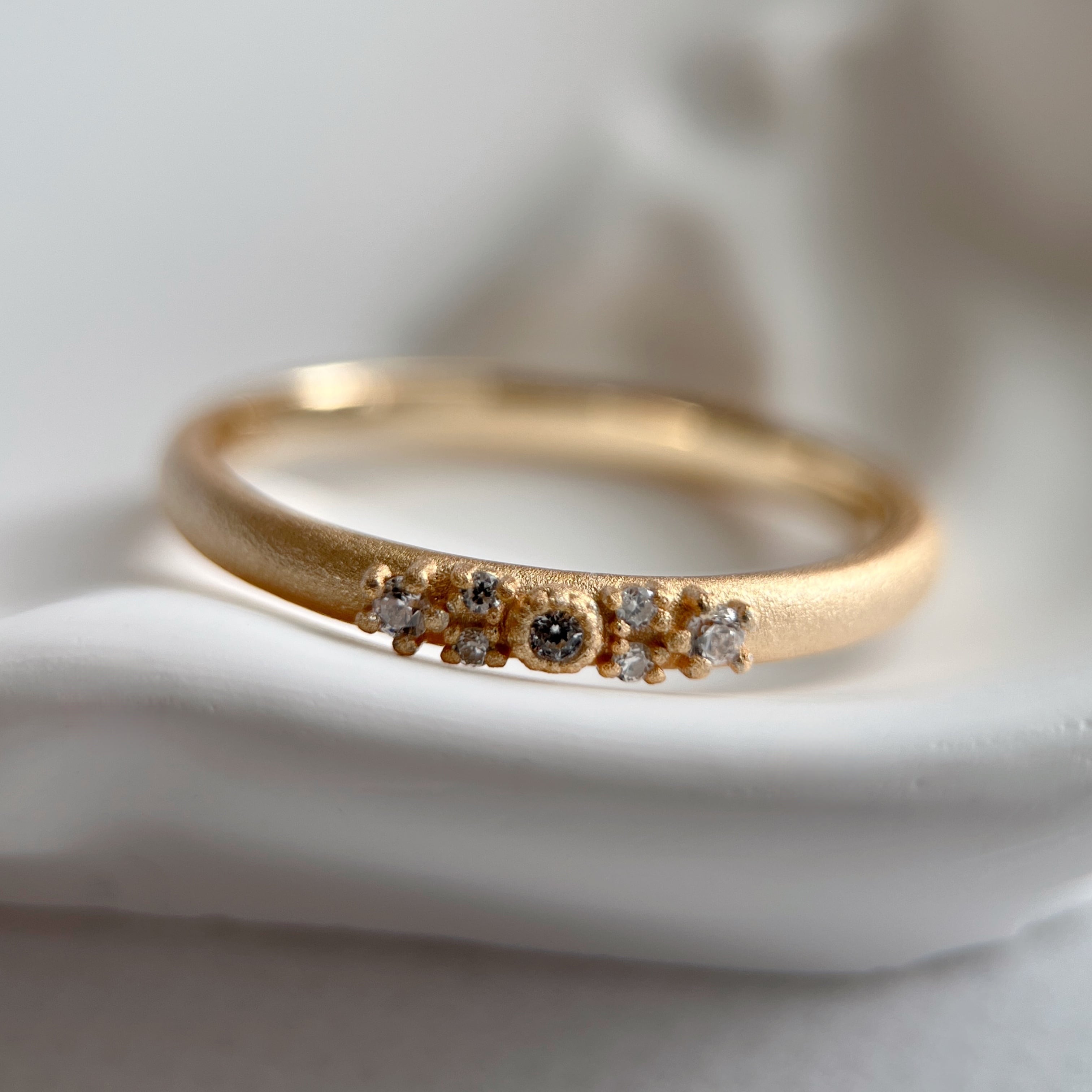 小さなモアサナイトを7石あしらったリング。