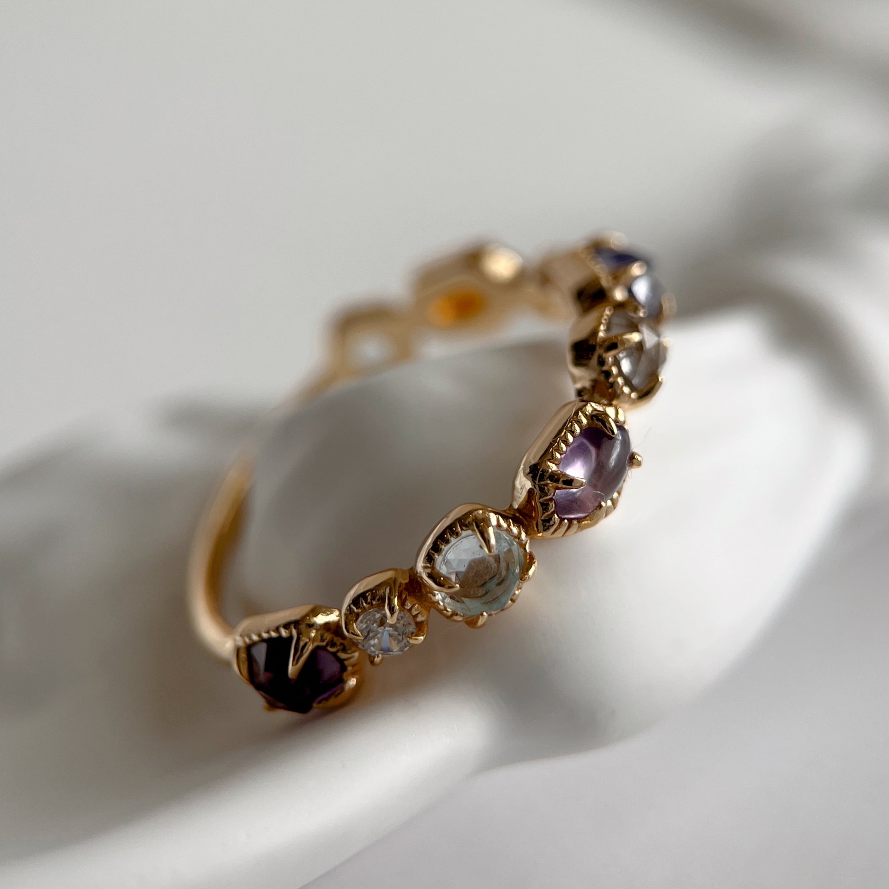 ◆主石名: 天然ダークカラーアメジスト(約4mm×3mm)、キュービックジルコニア(約2mm×2mm)、天然スカイブルートパーズ(約4mm×3mm)、天然アメジスト(約4mm×2mm)、天然ラブラドライト(約3mm×3mm)、タンザナイトカラーCZ(約4mm×3mm)、天然ペリドット(約2mm×2mm)、人工琥珀(約4mm×2mm)、天然スカイブルートパーズ(約3mm×3mm)