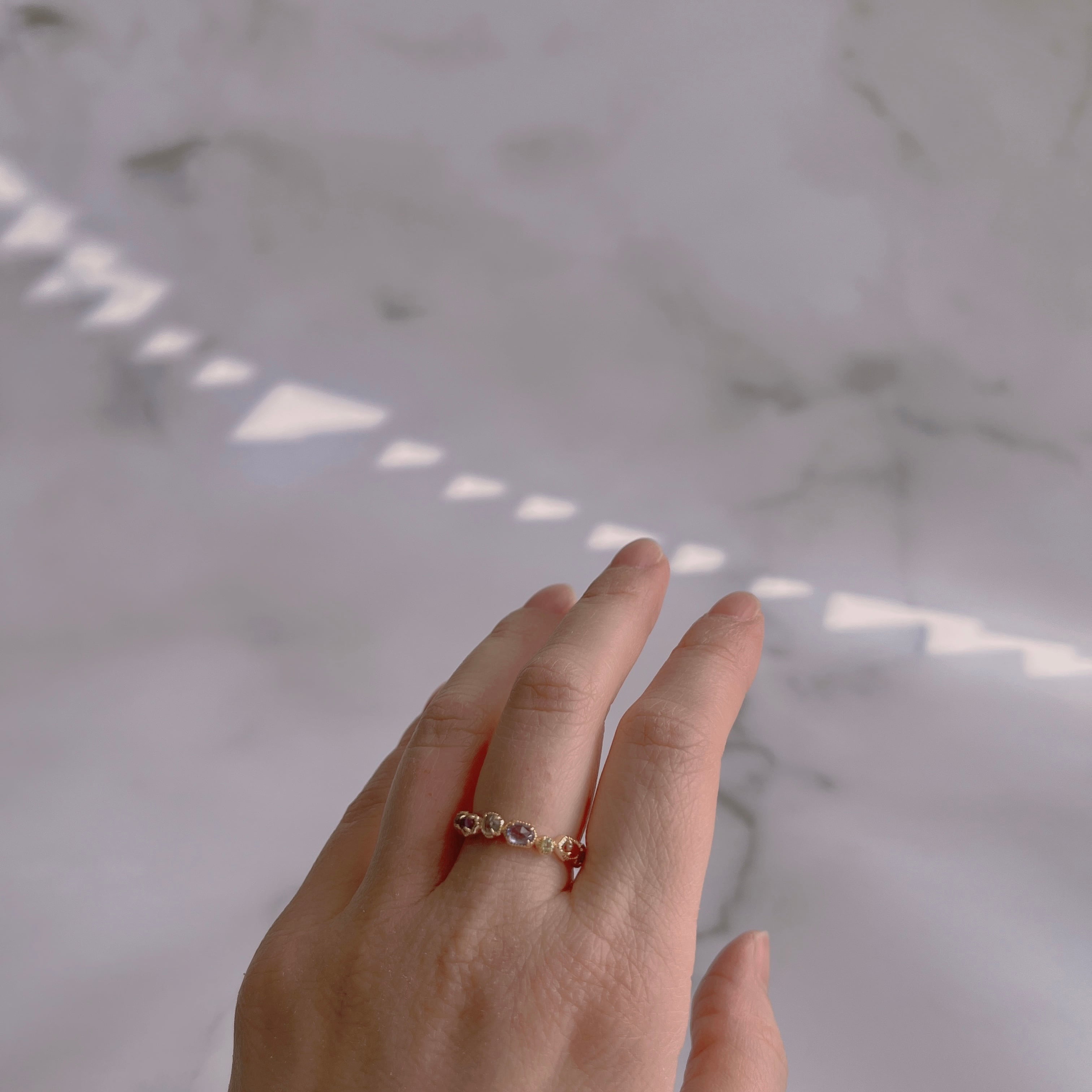 ランダムな形にカットされたストーンもおしゃれな印象。