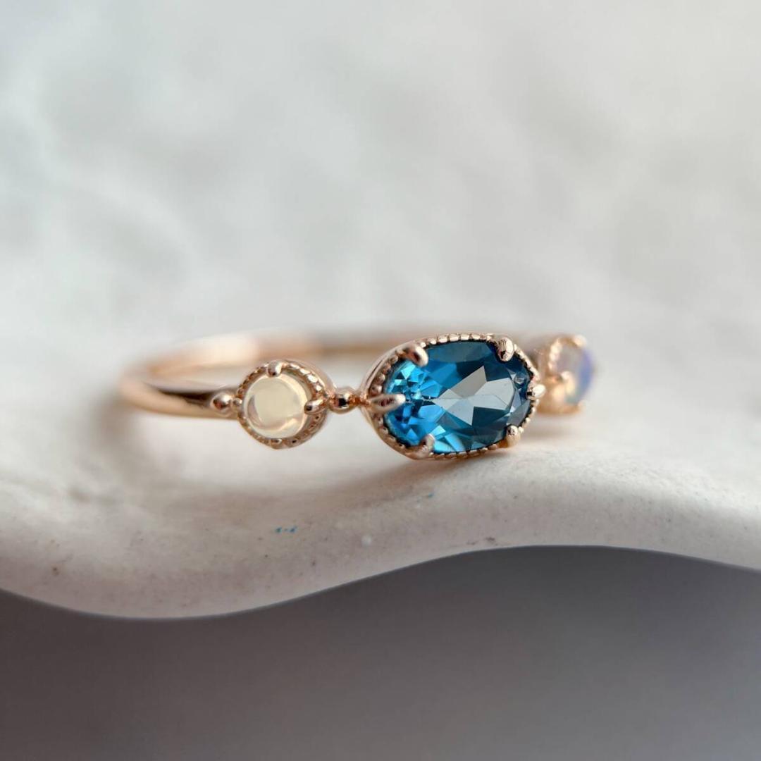 天然のロンドンブルートパーズとオパールのリングです。