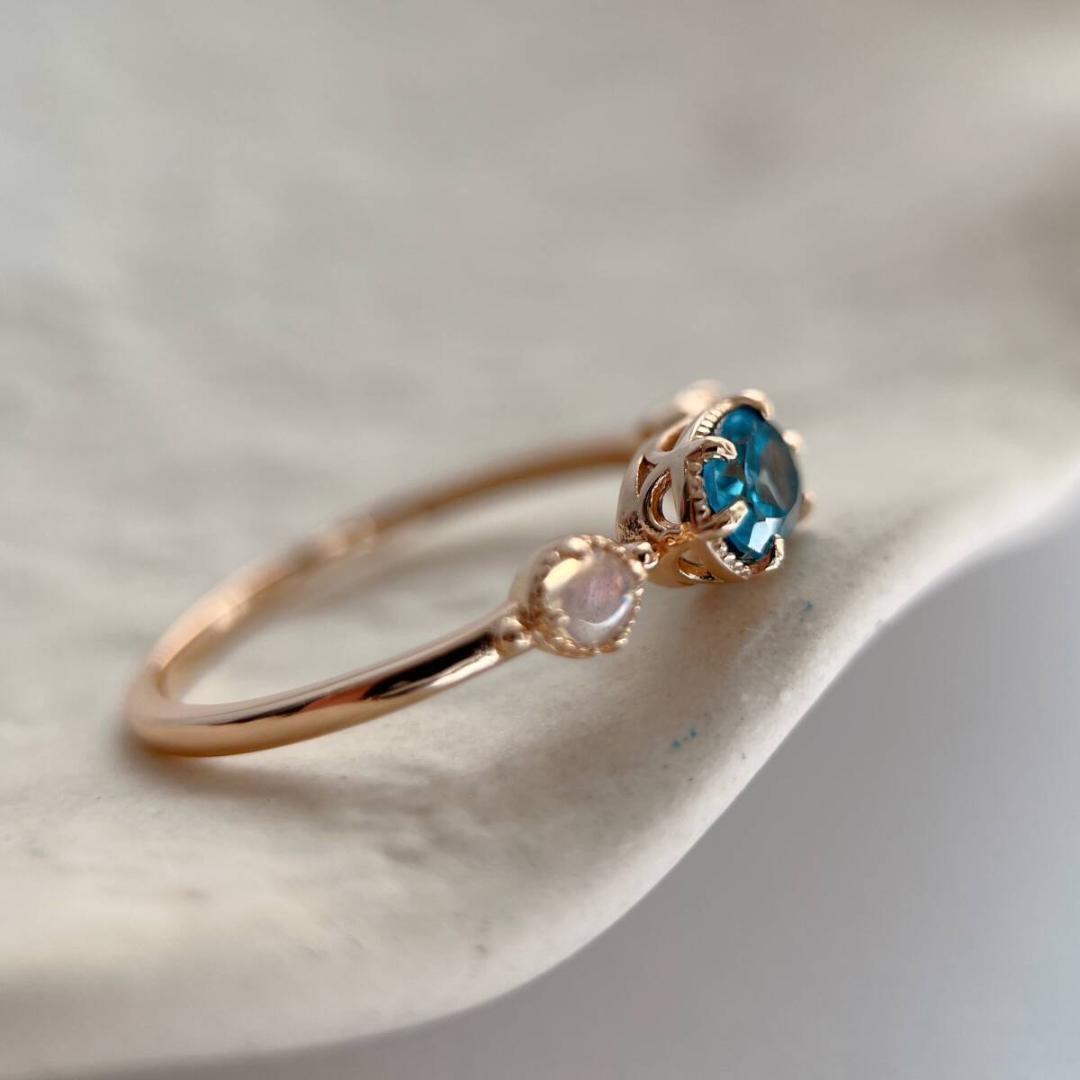 ◆主石名: 天然ロンドンブルートパーズ(約7.5mm×4mm)、天然オパール(約3mm×3mm)